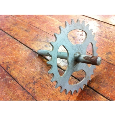 Uses small tricycle tapered cotter pin (approx 3/16in at the small end).